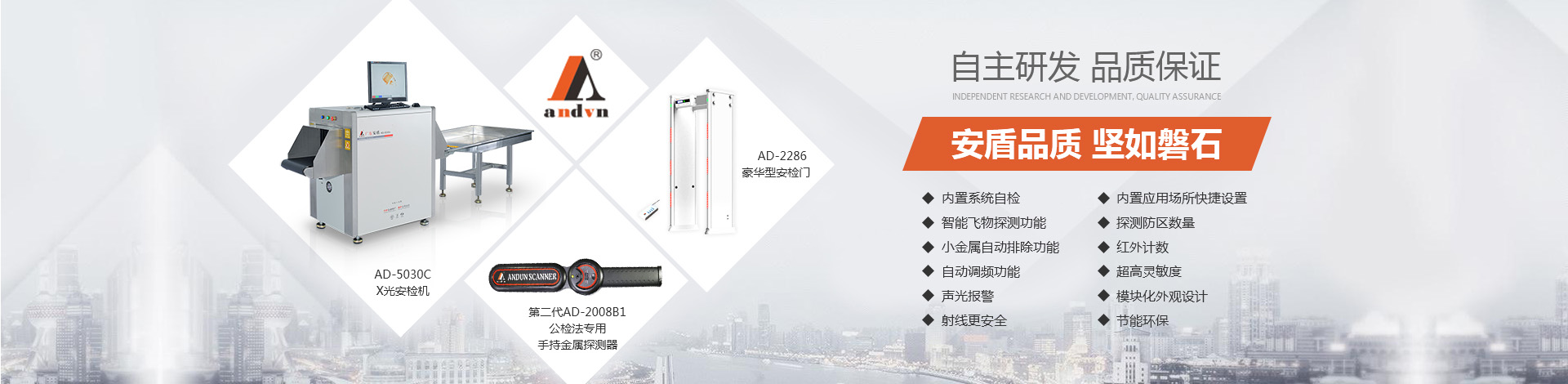 目前公司技術底蘊日益豐厚,擁有多項國家專利,在產品開發和創新方面有較深的制造經驗。“安盾品質 堅如磐石”是安盾人永恒不變的發展理念,公司目前已通過國際質量體系認證、國際環境體系認證、國際職業健康體系認證、產品已通過國家安全防范報警系統檢測中心和公安部安全與用電子產品質量檢測中心合格認證,并取得所有型號檢測報告,《GB15210-2003通過式金屬探測門》標準;并獲得國家高新技術企業認證、國家AAA級信用認證,歐盟CE認證、ROHS認證、美國FCC認證、廣東職業衛生檢測中心頒發的檢測報告、東莞市環境保護局頒發的《輻射安全許可證》,中國人民解放軍認證產品、中華人民共和國進出口企業、愛心公益企業等榮譽稱號;先后被當選為中國安全防范產品行業協會會員單位、廣東安防行業協會理事單位、東莞市安防行業協會常務副會長單位、中國安檢排爆聯盟常務理事單位、連續五年榮獲廣東省守合同重信用企業、中國警用裝備十大品牌、中國十大特種裝備品牌、科技型中小企業、廣東省高新技術產品等榮譽稱號、安盾集團平均每年服務至少200場大型活動安保任務。